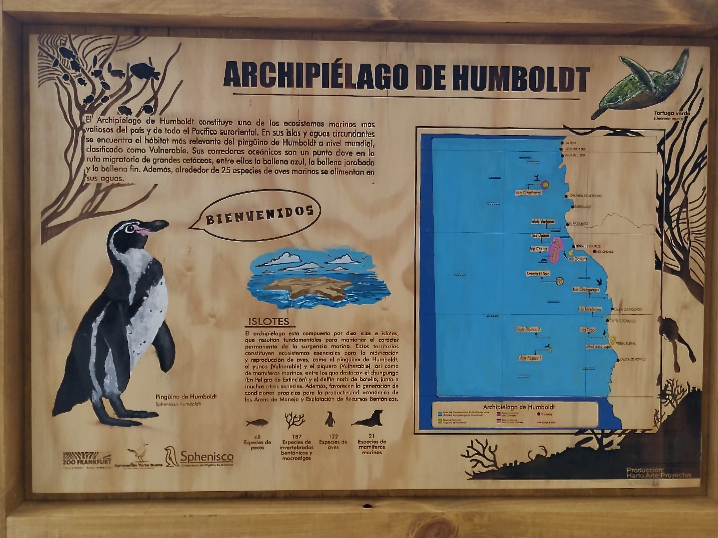 Landau 11. Oktober 2025. Am 3. Oktober wurde der InfoPoint Yerba Buena eröffnet (siehe „InfoPoint ... Eröffnung vom 9. Oktober). Mit dem Informationspunkt will die Yerba Buena Gruppe einen Beitrag zur Umweltbildung leisten und den Humboldt Archipel mit seiner Küstenfauna und -flora schützen. Das Informationszentrum wurde von der Familie Osorio und der Yerba Buena Gruppe mit Unterstützung von Sphenisco Chile, des Frankfurter Zoos und der Gemeinde La Higuera ins Leben gerufen. Die 2,5 Meter großen Pilpilén-Skulpturen (1) animieren, anzuhalten und sich über den Humboldt Archipel und das Ökosystem in Yerba Buena zu informieren. (2)