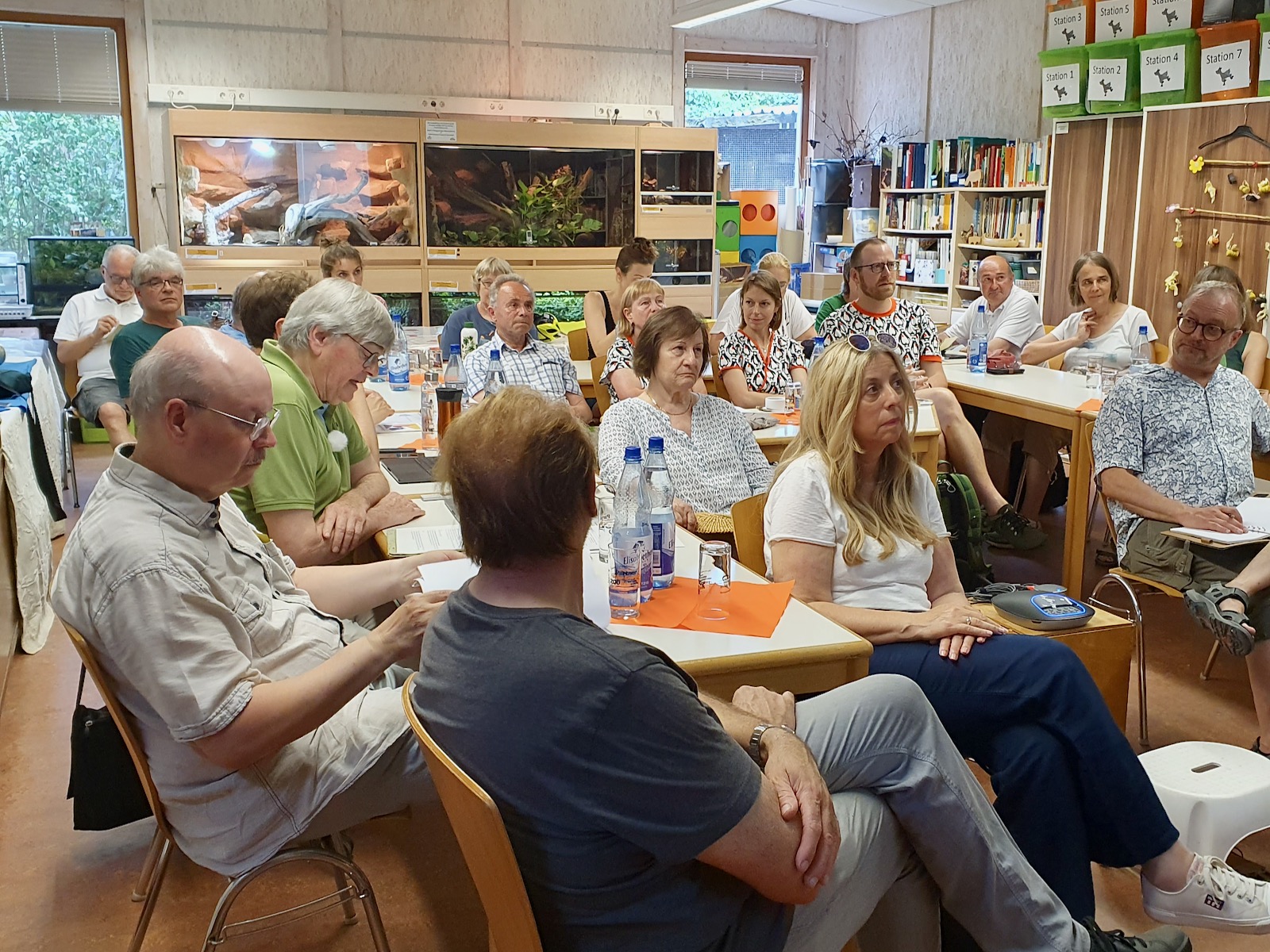 Die Hitzewelle hatte Vereinsmitglieder aus sieben Bundesländern nicht davon abgehalten, nach Landau zu kommen, ein Zeichen ihrer Vereinsverbundenheit. Zur inneren Abkühlung standen auf den Tischen genügend Wasserflaschen bereit. Vorsitzender Werner Knauf konnte 25 Mitglieder und drei Gäste begrüßen. Einleitend würdigte Zoodirektor Dr. Jens-Ove Heckel die engagierte und erfolgreiche Arbeit des Vereins.