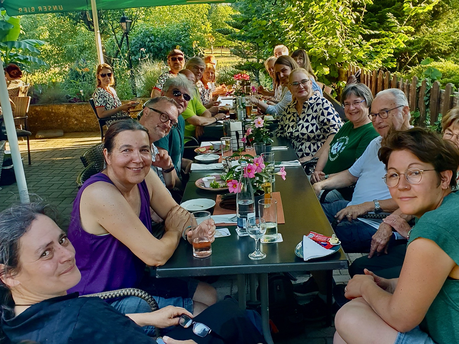 Der gesellige Austausch während der Kaffeepausen setzte sich am Abend in fröhlicher Runde in der Gaststätte Mühlengrund in Heuchelheim bis in die späten Abendstunden fort. Die Teilnehmer tauschten sich über die Arbeit in verschiedenen Zoos und deren Projekte aus und erzählten von Reisen, Tierbegegnungen und Tiererlebnissen in fernen Ländern. An einem Tisch setzten die beiden Globetrotter Volker und Isa die Runde in Erstaunen. Hatten sie doch von den siebzehn existierenden Pinguinarten bereits sechzehn in freier Wildbahn erlebt. Mit einer weiteren Reise in die Antarktis sollten sie nicht mehr allzu lange warten. Die Kaiserpinguine erwarten sie.