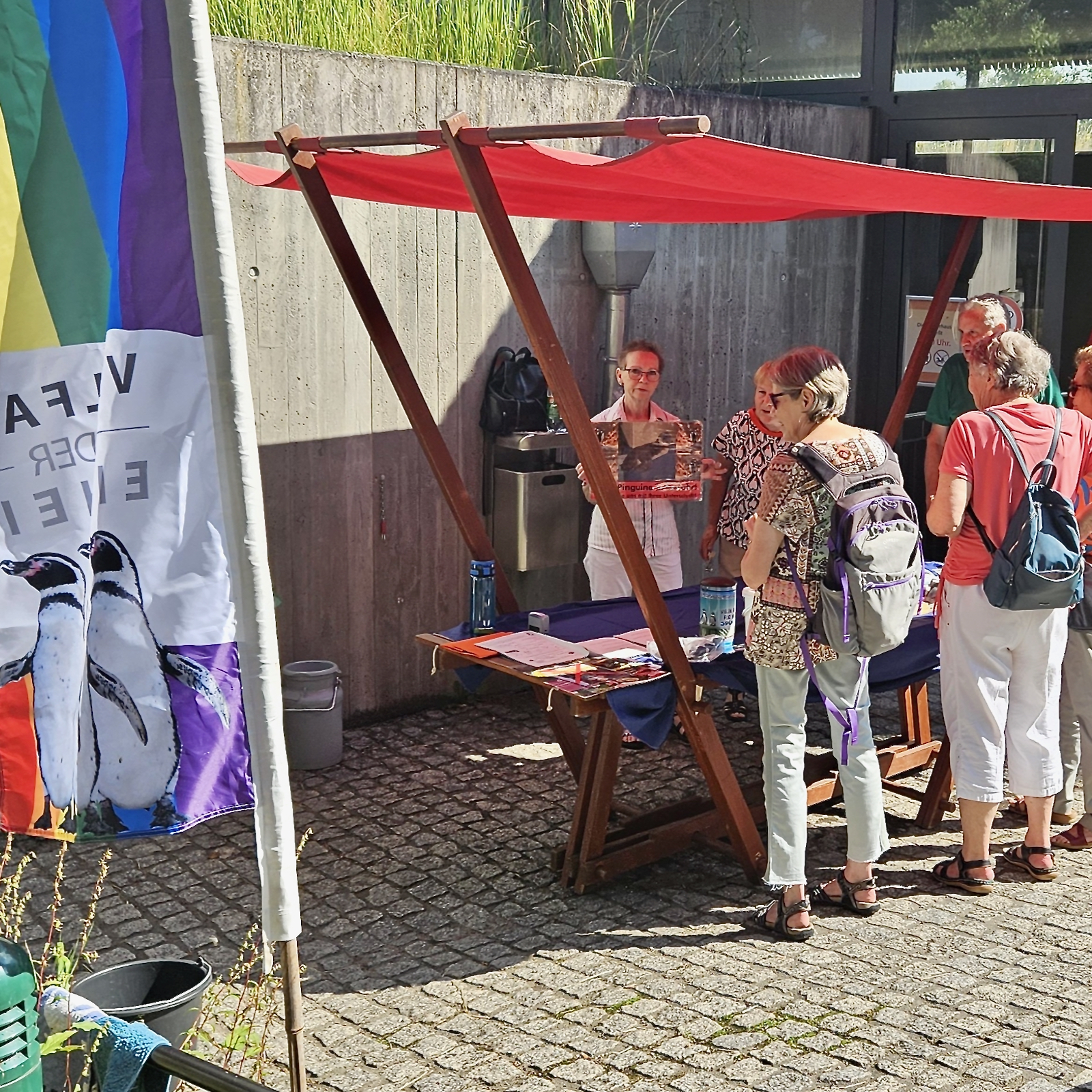 Nur gut, dass Conny und Kathrin vom Engagement und den vielen kleinen und großen Erfolgen von Sphenisco (mehr unter https://sphenisco.org/de) berichten konnten. Zahlreiche Menschen nutzten die Gelegenheit für Fragen und bedankten sich für die vielen Informationen, sowie den Spiel-und-Bastelspaß mit kleinen Spenden in unserer großen Sphenisco-Pinguinspardose.