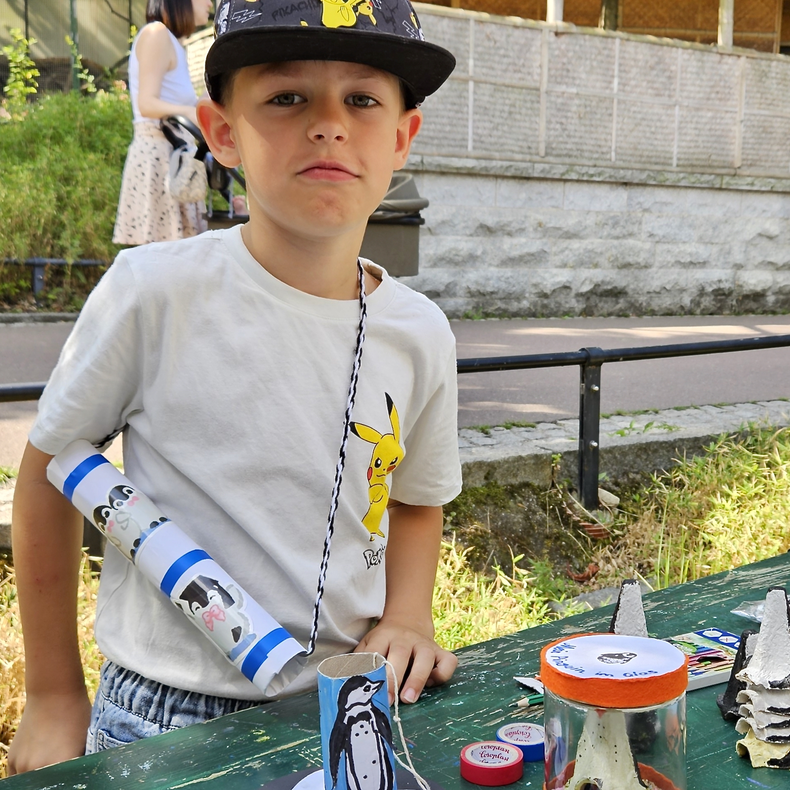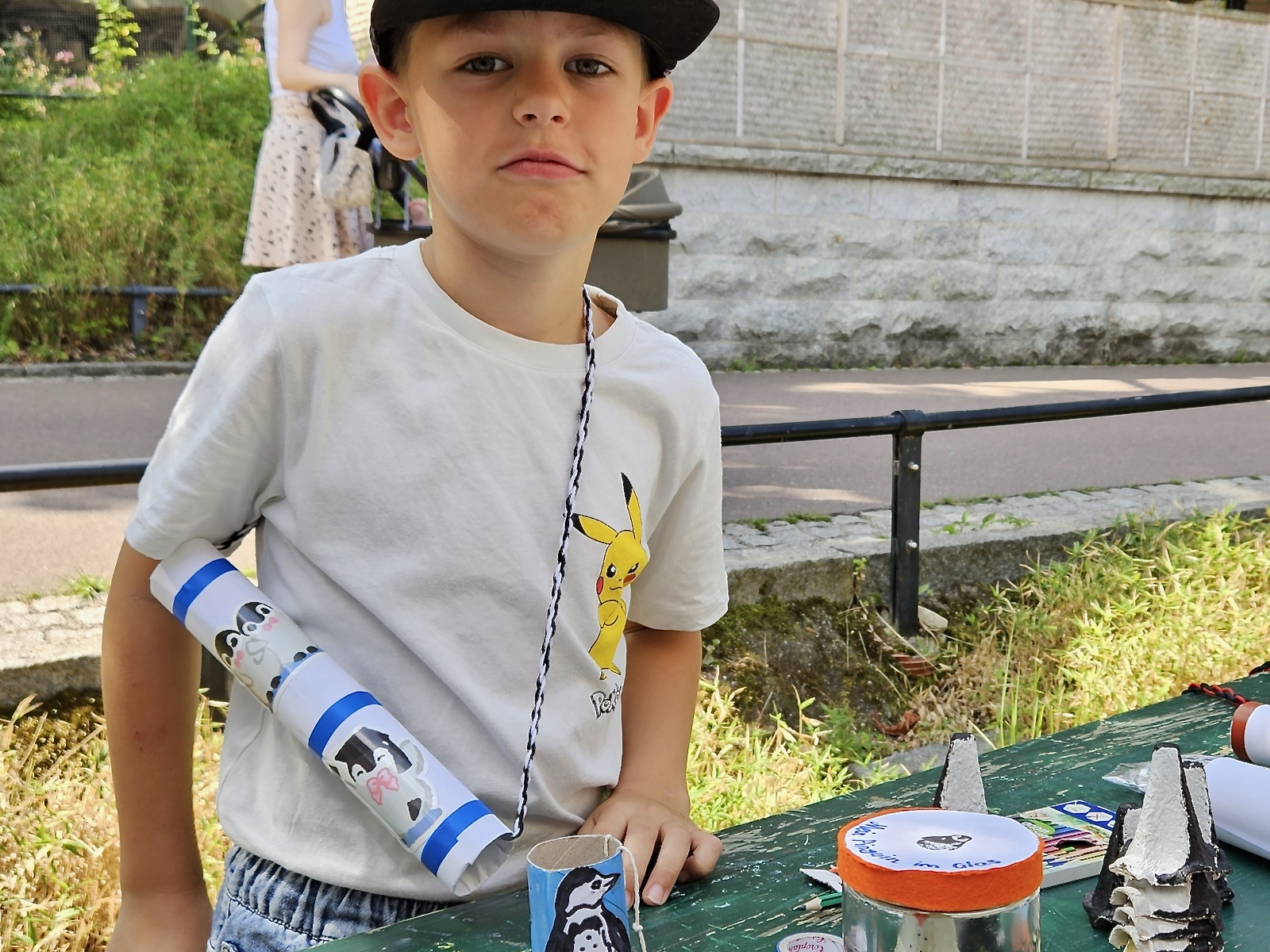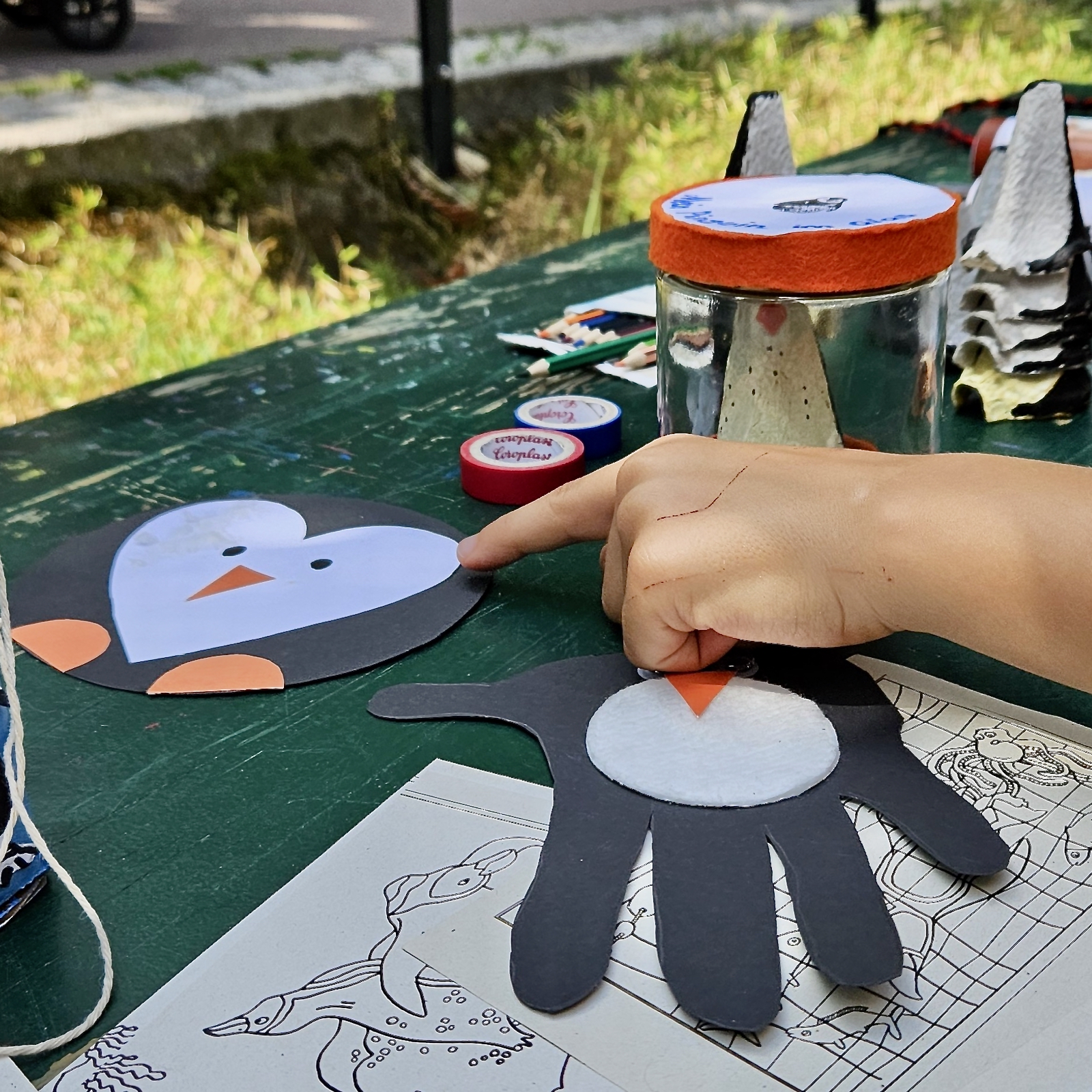 Genau aus diesen Gründen durften alle kleinen und großen Pinguinfreunde an zwei großen Basteltischen ihre Phantasie ausleben. Aus Materialien, die nur allzu oft im Alltagsmüll landen, erschufen viele fleißige Hände tolle und individuelle Pinguin Andenken. Aus Klopapierrollen entstanden hübsch dekorierte Pinguin- bzw. Murmelfangbecher, aus leeren Küchenrollen Fernrohre für Nachwuchsabenteurer und aus leeren Honiggläsern und Eierkartons bezaubernde Geschenke für die (Groß-) Eltern: Pinguine im Glas.