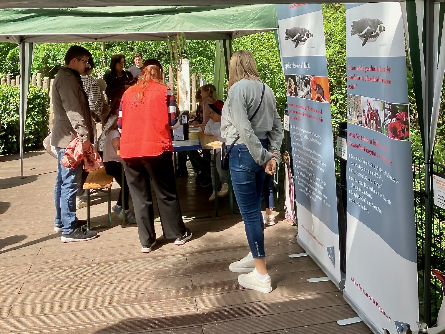 The conditions on the last day of the Easter holidays in NRW were good: bright sunshine and almost summer-like temperatures. Visitors were able to learn about the popular little tailcoats at several stands. The information stand was all about the Humboldt Penguin and Sphenisco. Children and adults were able to learn a lot about these extraordinary birds by playing educational games. The penguin course also highlighted dangers such as habitat loss, oil spills, overfishing, plastic waste and climate change in a child-friendly way.