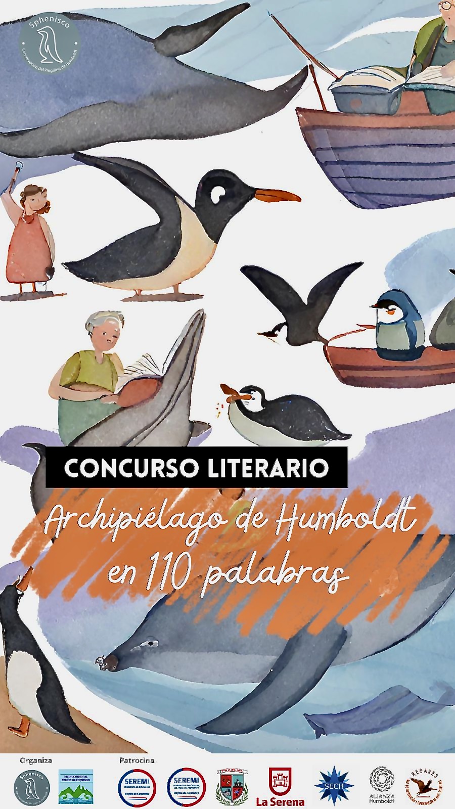El concurso literario "Archipiélago Humboldt en 110 Palabras" es organizado por sphenisco-chile y "Defensa Ambiental Región de Coquimbo" y apoyado por Alianza Humboldt, los dos ministerios regionales de Educación, las municipalidades de Freirina y de La Serena, organizaciones culturales y medioambientales y el diario El Mostrador. El proyecto cuenta con el patrocinio del zoológico de Rostock.