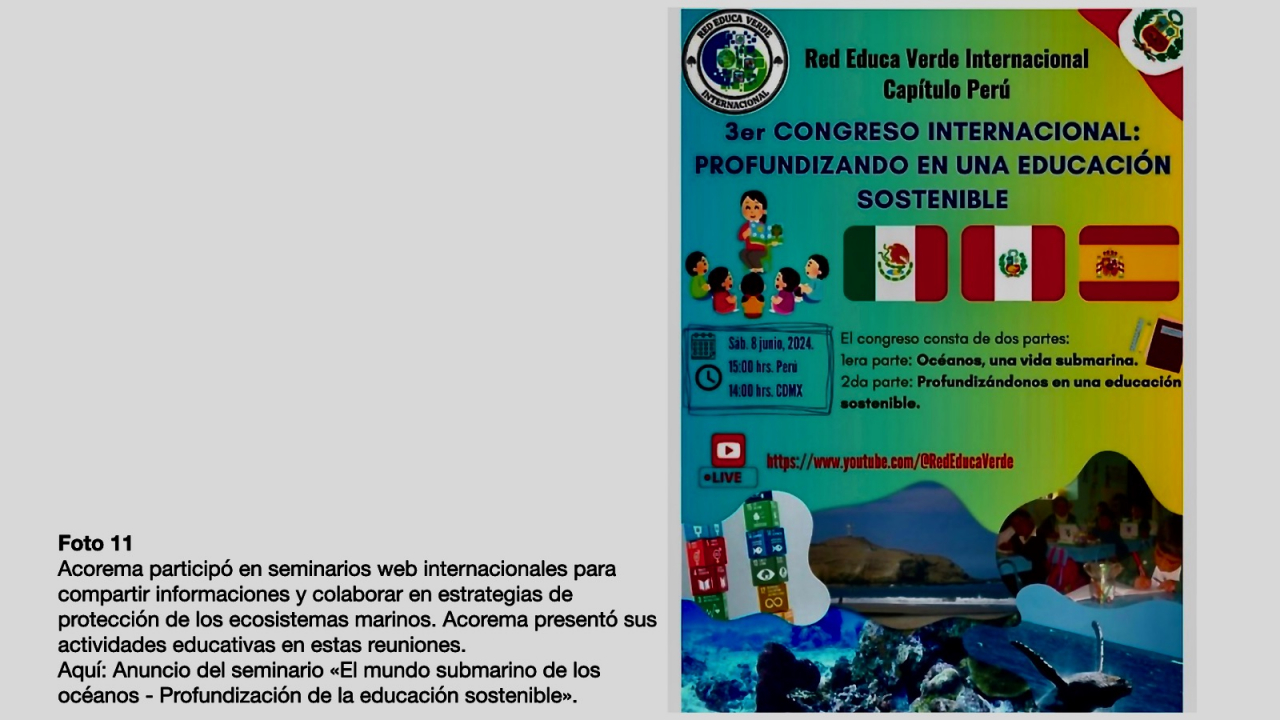 (3) Esto también se refleja en un mensaje de la Señora Milagros: "Estoy muy contenta de haber podido presentar el trabajo realizado con Sphenisco y parece que muchos de los presentes quedaron impresionados por las actividades con los niños, los materiales producidos, el trabajo con las autoridades, etc. He recibido muchas felicitaciones por el trabajo realizado con Sphenisco. Recibí muchas felicitaciones por lo mostrado, que transmito al equipo de Sphenisco, que ha sido y sigue siendo un apoyo muy importante a lo largo de los años."